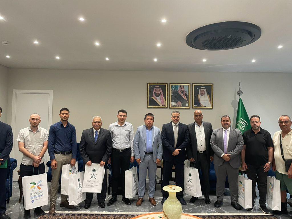 وتم الترحاب بالقهوة السعودية والتمر السعودى وتسليم ملابس الإحرام