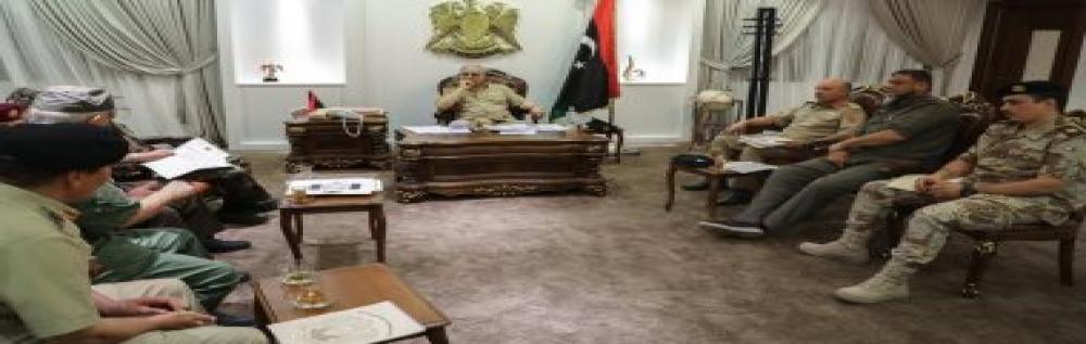 التقى القائد العام للقوات المسلحة الليبية المشير أركان حرب خليفة حفتر، امس، مع قادة المحاور العسكرية فى طرابلس لمتابعة سير العمليات العسكرية وإعطاء التعليمات والتوجيهات.