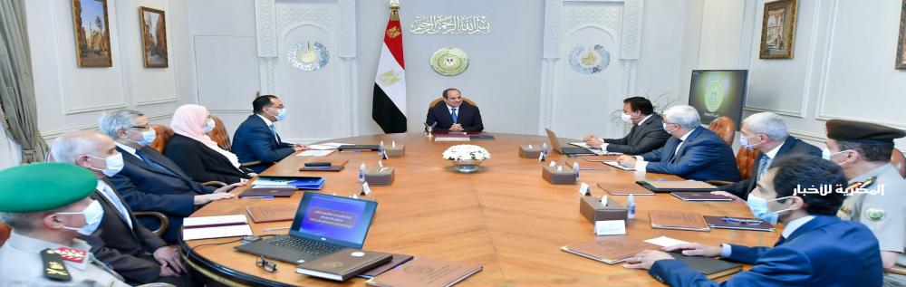 اجتمع الرئيس عبدالفتاح السيسي، اليوم الثلاثاء، مع الدكتور مصطفى مدبولي رئيس مجلس الوزراء، والدكتور خالد عبدالغفار وزير الصحة والسكان، ونيفين القباج وزيرة التضامن الاجتماعي، والدكتور محمد أيمن عاشور وزير التعليم العالي والبحث العلمي، والدكتور محمد عوض تاج الدين مستشار رئيس الجمهورية لشئون الصحة والوقاية، واللواء طبيب بهاء الدين زيدان رئيس مجلس إدارة الهيئة المصرية للشراء الموحد، واللواء السيد الغالي رئيس مجلس إدارة صندوق تكريم الشهداء، واللواء طبيب عيد محمود مستشار وزير الدفاع للتعليم الطبي والأجهزة التعويضية، واللواء محمد علي نائب مدير إدارة البحوث الفنية والتطوير للقوات المسلحة".