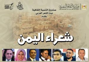 في إطار الدور الثقافي الرائد الذي يضطلع به صندوق التنمية الثقافية في دعم الإبداع العربي وتعزيز الحوار الثقافي بين الشعوب، ينظم بيت الشعر العربي بمقره في مركز إبداع الست وسيلة خلف الجامع الأزهر أمسية شعرية وفنية بعنوان "شعراء اليمن"، وذلك في السابعة مساء الأحد 16 نوفمبر.