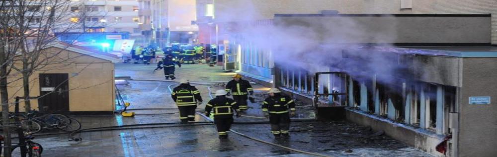 وقال لارس فرانزل المتحدث باسم الشرطة للصحفيين إن "أحد شهود العيان قال إنه رأى شخصا يلقي بجسم غير معلوم نحو نافذة المبنى الذي يقع به المسجد واندلع النار بعد ذلك".