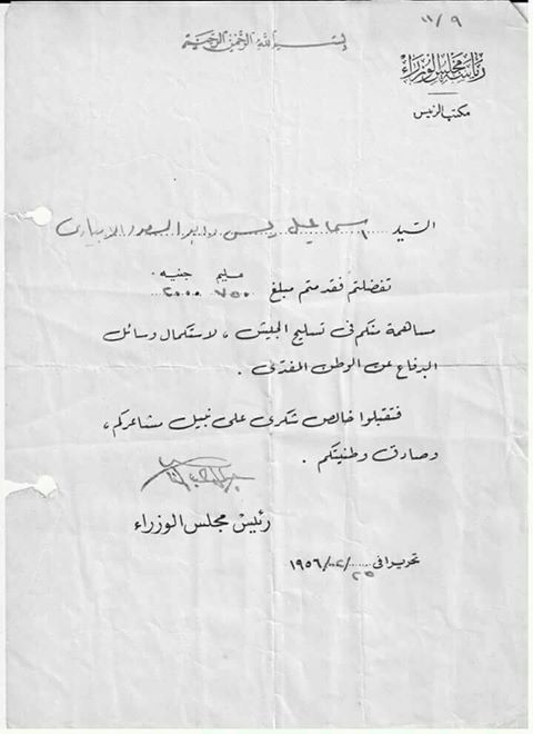 نشر المنتج محمد العدل، صورة من مبلغ تم تقديمه النجم الراحل إسماعيل ياسين إلى رئاسة مجلس الوزراء، كدور ومساهمة منه فى تسليح الجيش لإستكمال وسائل الدفاع عن الوطن.