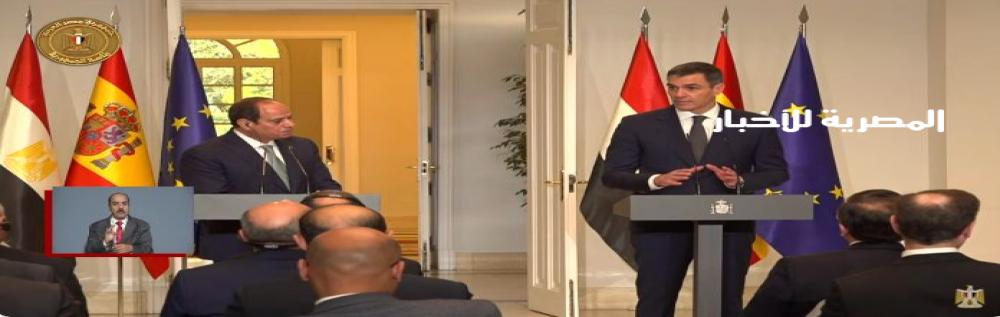 جاء ذلك خلال مؤتمر صحفي مشترك بين الرئيس عبدالفتاح السيسي ورئيس وزراء إسبانيا بيدرو سانشيز بمقر الحكومة الإسبانية.