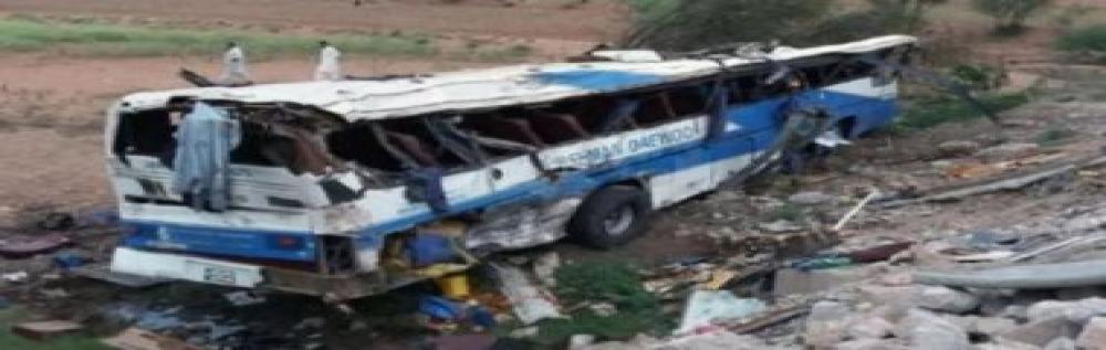 أكدت السلطات الباكستانية أن 20 شخصا على الأقل لقوا مصرعهم وأصيب 50 آخرون جراء انقلاب حافلة تقل وافدين على طريق سريع، وسقوطها في واد ضيق بجنوب غرب البلاد، بحسب روسيا اليوم.