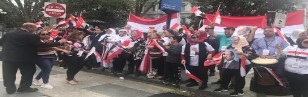 احتشد أبناء الجالية المصرية من مختلف أنحاء الولايات المتحدة الأمريكية أمام البيت الأبيض ، قبل وأثناء القمة الثنائية بين الرئيس عبدالفتاح السيسي ونظيره الامريكي دونالد ترامب ، حيث رفعوا أعلام مصر وصور الرئيس السيسي وسط هتافات ". تسلم الأيادي .. بلادي بلادي.. يا حبيبتي يا مصر ..بشرة خير.. قالوا ايه علينا دولا وقالوا ايه".