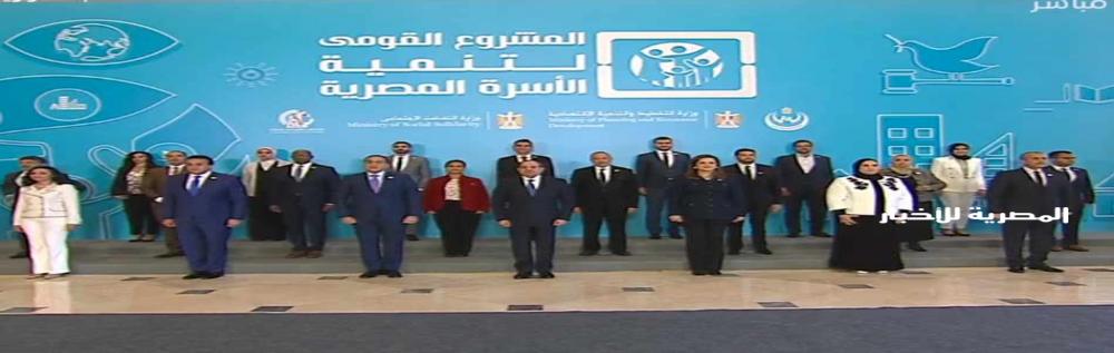 صورة تذكارية للرئيس السيسي والمشاركين في إطلاق المشروع القومي لتنمية الأسرة المصرية