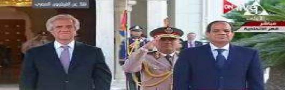 استقبل الرئيس عبد الفتاح السيسى رئيس أوروجواى بقصر الاتحادية، واستعرض السيسى حرس الشرف رفقة الرئيس الضيف داخل قصر الاتحادية.
