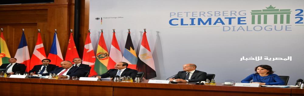 كما تم استعراض سبل التعاون والتنسيق المشترك في إطار استضافة مصر لقمة المناخ العالمية في شرم الشيخ في نوفمبر من العام الجاري، خاصةً في ضوء الدور البارز للدولتين في مجال قضايا البيئة والمناخ، حيث أعرب المستشار الألماني عن خالص تمنياته بنجاح مصر في استضافة هذا الحدث الدولي الضخم والخروج بنتائج ملموسة من هذه القمة تعزز من عمل المناخ الدولي، في حين أوضح الرئيس أن مصر تعتزم التركيز خلال هذه القمة على عدد من الملفات الهامة، خاصةً ما يتعلق بموضوعات التكيف في أفريقيا، ومسألة التمويل لدعم جهود القارة الأفريقية في مواجهة الظاهرة الخطيرة لتغير المناخ.ك، وأعقب اللقاء مؤتمراً صحفياً مشتركاً بين الجانبين، حيث ألقى الرئيس كلمة بهذه المناسبة.