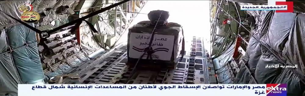واصلت طائرات النقل العسكري المصرية والإماراتية الإقلاع من مطار العريش لتنفيذ أعمال الإسقاط الجوى لعشرات الأطنان من المساعدات والمواد الإغاثية العاجلة للتخفيف من الأزمة الإنسانية الحادة التى يعانى منها المواطنون الفلسطينيون فى شمال غزة، تنفيذًا لتوجيهات الرئيس عبدالفتاح السيسى رئيس الجمهورية القائد الأعلى للقوات المسلحة باستمرار الجسر الجوى لنقل المساعدات الإنسانية العاجلة للأشقاء الفلسطينيين بقطاع غزة.