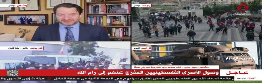 كما أعلنت القناة عن وصول الحافلات التي تقل الأسرى الفلسطينيين المفرج عنهم إلى رام الله.