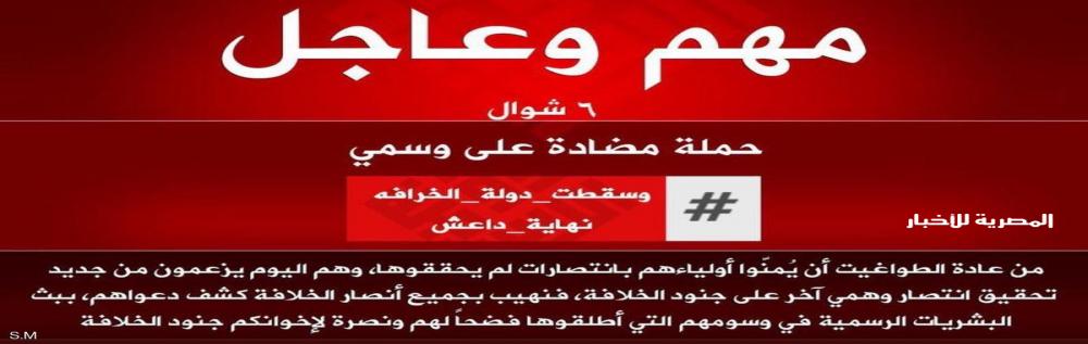 ونشر موقع "تيرور مونيتور" المتخصص في أخبار الجماعات المتطرفة، دعوة وجهها داعش إلى أنصاره بعد هزيمته في الموصل. حيث دعا التنظيم أتباعه إلى الرد على وسمي "وسقت دولة الخرافة"، ووسم "نهاية داعش".
