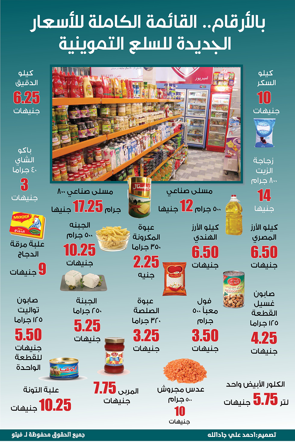 بالأرقام.. القائمة الكاملة للأسعار الجديدة للسلع التموينية