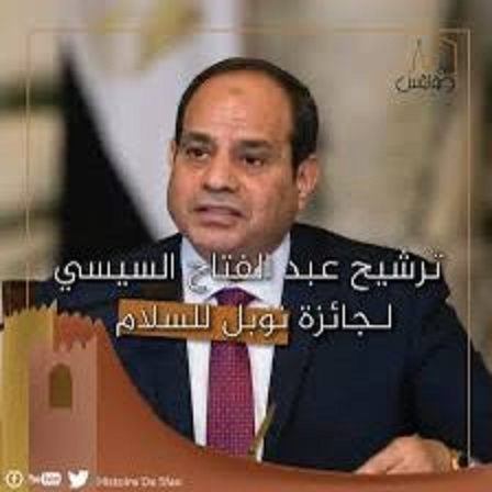 ساعيًا لصنع السلام في أرض السلام. لذلك، يرى كثيرون أن ترشيحه لهذه الجائزة استحقاق طبيعي منذ توليه رئاسة مصر عام 2014.