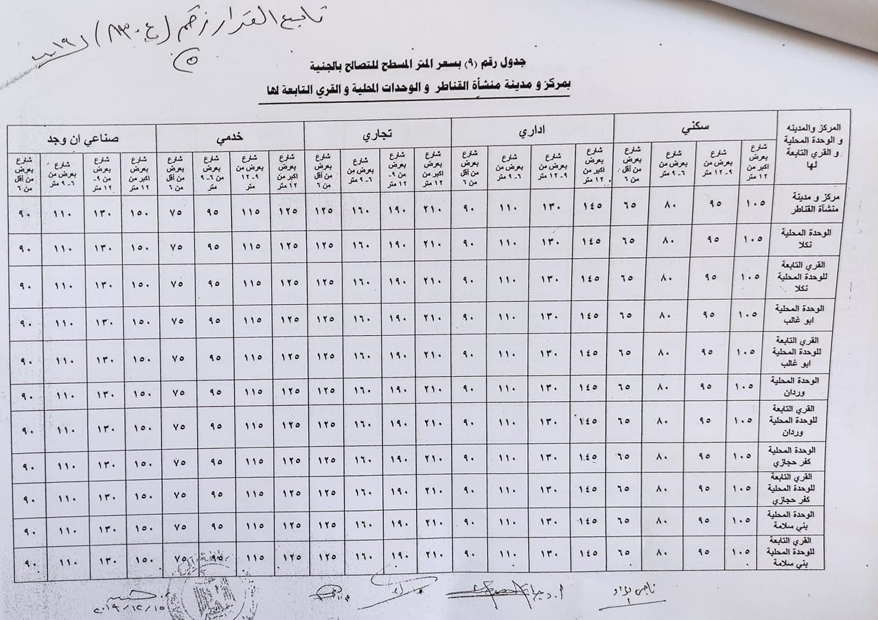 نشرت محافظة الجيزة قرار اللواء أحمد راشد محافظ الجيزة، بالقيم السعرية للتصالح فى مخالفات البناء بمركز ومدينة منشأة القناطر، حيث يبدأ سعر متر التصالح في الأغراض السكنية من 65 جنيها للمتر.