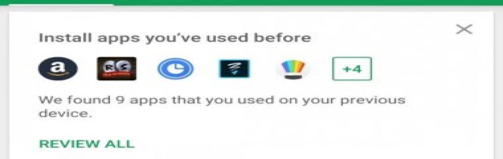 ووفقا لما نشره موقع androidpolice الأمريكى، فإن هذه البطاقة الجديدة تسلط الضوء على عدد قليل من التطبيقات التى سبق أن ثبتها المستخدم، بما فى ذلك التطبيقات التى تم تثبيتها على نفس الحساب ولكن لأجهزة أخرى، وهناك زر "مراجعة الكل"، وبمجرد الضغط عليه يعرض للمستخدم باقة من التطبيقات، ويتم مطالبته بتحميلها كلها دفعة واحدة أو الاختيار بشكل منفرد.