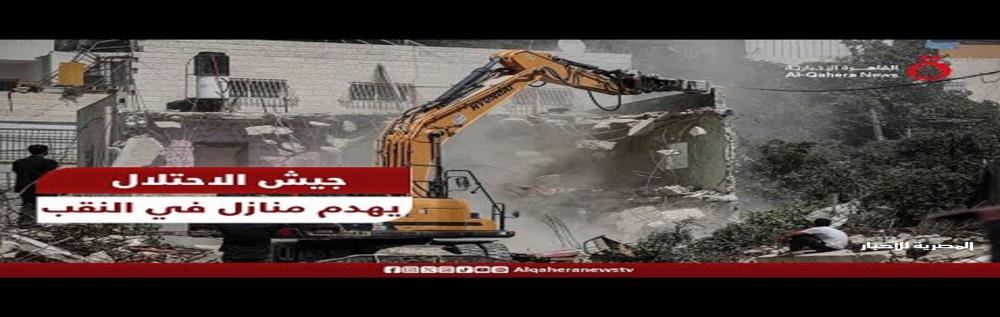 عرضت قناة "القاهرة الإخبارية" مشاهد تظهر جيش الاحتلال الإسرائيلي يهدم منازل في النقب وسط اشتباكات مع السكان.