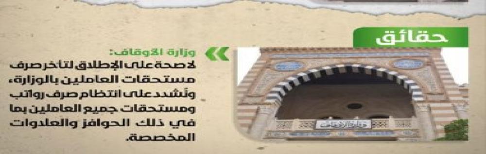 وزارة الأوقاف تنفى تأخر صرف مستحقات العاملين بالوزارة