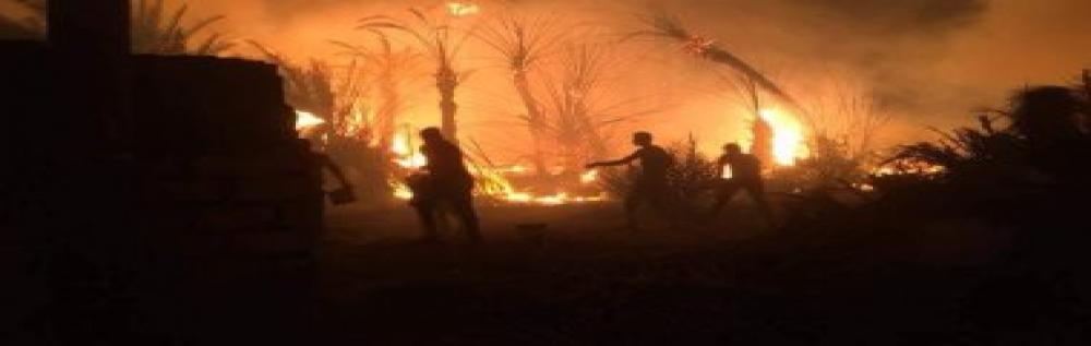 نشوب حريق بمزارع النخيل بقرية المعصرة بالوادى الجديد والدفاع المدنى يحاول السيطرة