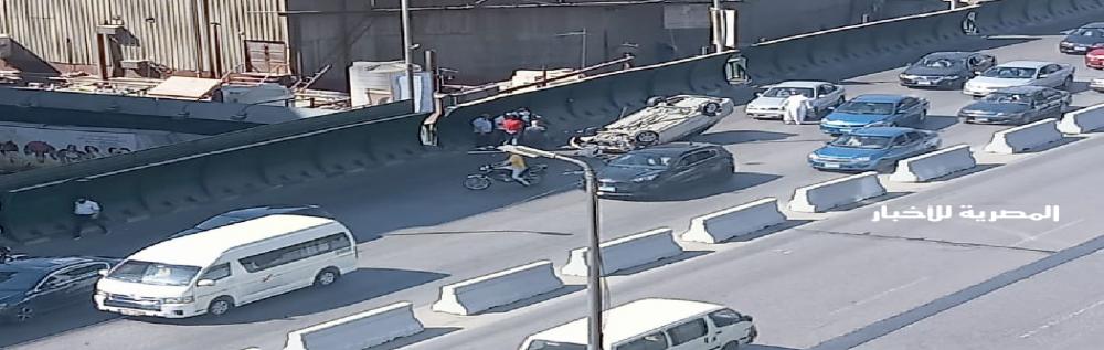 انقلاب سيارة ملاكي أعلى كوبري 6 أكتوبر بمنطقة الإسعاف