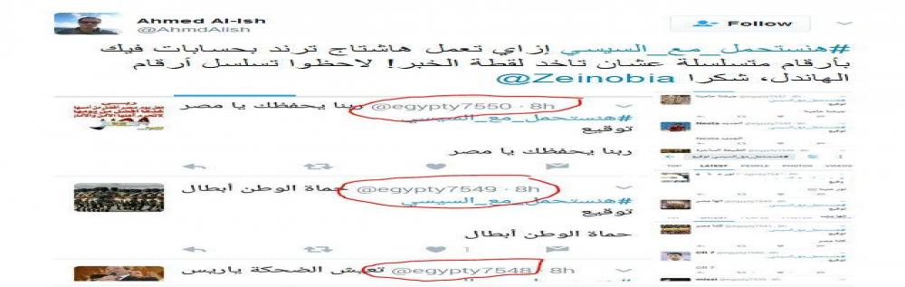 كشف الناشط أحمد العش، تورط اللجان الإلكترونية على موقع التواصل الاجتماعي، تويتر، في تدشين هاشتاج يحمل اسم"#هنستحمل_مع_السيسي"، للوصول به إلى الترند.