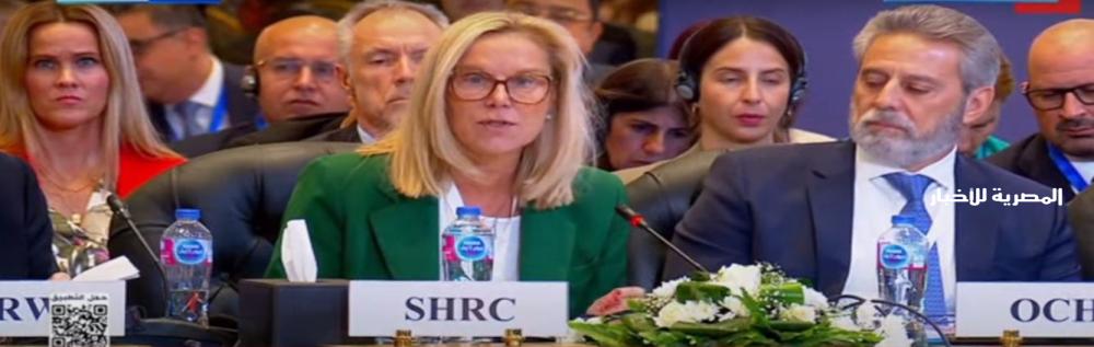 جاء ذلك خلال كلمتها أمام مؤتمر القاهرة لتعزيز الاستجابة الإنسانية في غزة.
