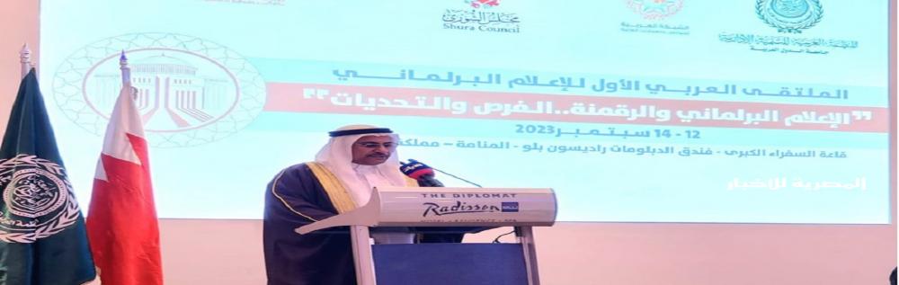 جاء ذلك خلال الكلمة التي ألقاها رئيس البرلمان العربي في افتتاح أعمال الملتقى العربي الأول للإعلام البرلماني، الذي عقد في العاصمة البحرينية المنامة، تحت عنوان "الإعلام البرلماني والرقمنة... الفرص والتحديات"، والذي نظمته المنظمة العربية للتنمية الإدارية التابعة لجامعة الدول العربية.