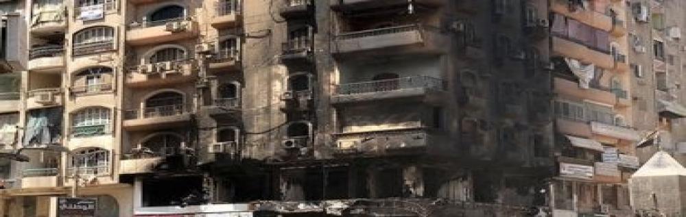 استعجال تقرير المعمل الجنائى لكشف أسباب حريق عقار ميدان الساعة في الجيزة