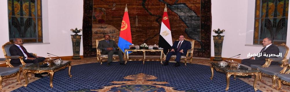 استقبل السيد الرئيس عبد الفتاح السيسي، اليوم، الرئيس أسياس أفورقي، رئيس دولة إريتريا، وذلك بحضور الدكتور بدر عبد العاطي، وزير الخارجية والهجرة وشؤون المصريين في الخارج، والسيد عثمان صالح محمد، وزير الخارجية الإريتري.