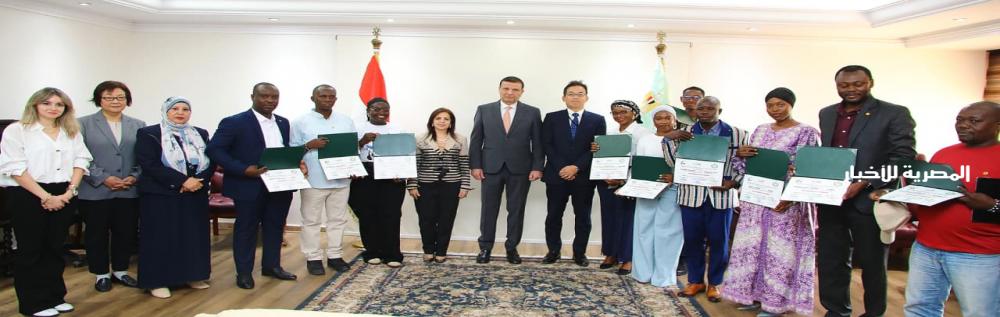 شهد علاء فاروق وزير الزراعة واستصلاح الأراضي، حفل تخرج وتسليم الشهادات لدفعة جديدة من المتدربين الأفارقة، ضمن البرنامج التدريبي المتخصص حول: البحوث والإرشاد الزراعي في محصول الأرز، الذي استضافه المركز المصري الدولي للزراعة، بالعلاقات الزراعية الخارجية لنحو 10 متدربين من دول القارة الإفريقية الشقيقة.