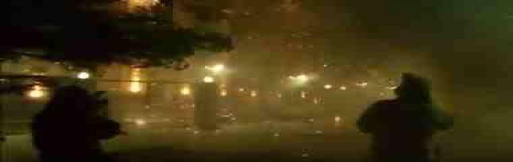 وأظهر تسجيل فيديو عرضه الإعلام الأوكراني نحو 20 شابا يحملون لافتة كتب عليها "مفرقعات امس وصواريخ غراد اليوم