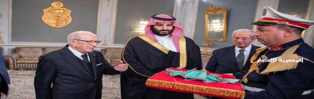 وقد منح الرئيس التونسي الصنف الأكبر من وسام الجمهورية لولي العهد، تقديرا لجهوده في دعم وتعزيز العلاقات السعودية التونسية.