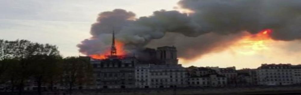 ويذكر أن حريق هائل نشب فى كاتدرائية نوتردام بوسط العاصمة الفرنسية باريس بعد ظهر اليوم الاثنين، نتج عنه انهيار برج الكاتدرائية التاريخية، بينما مايزال الحريق مشتغلًا فى الكاتدرائية وسط جهود مكثفة لمحاولة السيطرة على النيران.